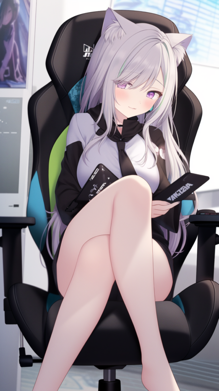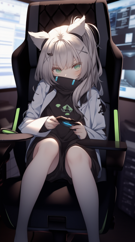 原始动漫照片,热辣女人坐在游戏椅上,插画,高筒袜,明日方舟