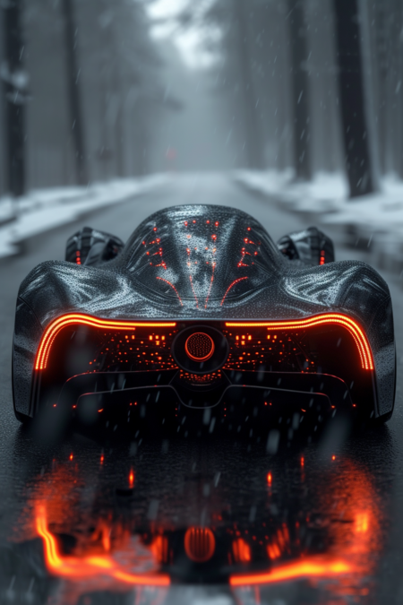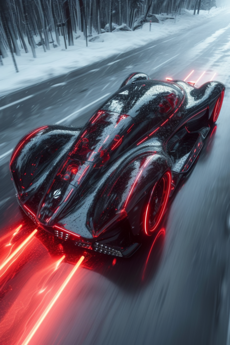 cyber truck, f1 formula, faraday future designer, EFZER01, sleek design, alien futuristic, electrical, conceptual, gradient translucent glass melt, caustic, soft fabric, techno saber, matte stain black and silver and red, light gray background, backlight, hyper realistic, studio photography, cinematic visuals --ar 2:3 --quality 0.5 --stylize 750 --v 6