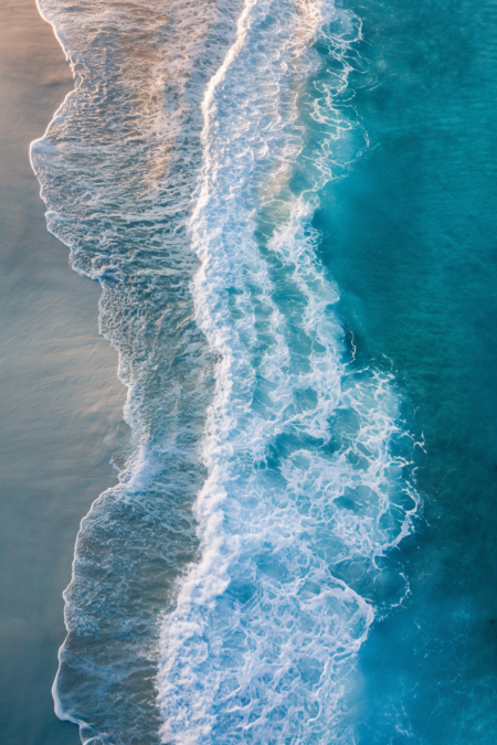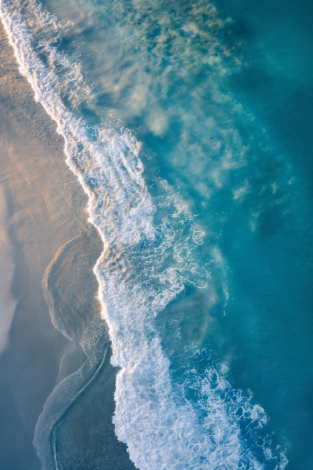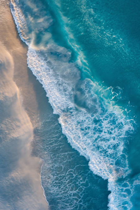 ocean shore aerial view, award winning studio photography, professional color grading, soft shadows, no contrast, clean sharp focus digital photography --ar 2:3 --v 6